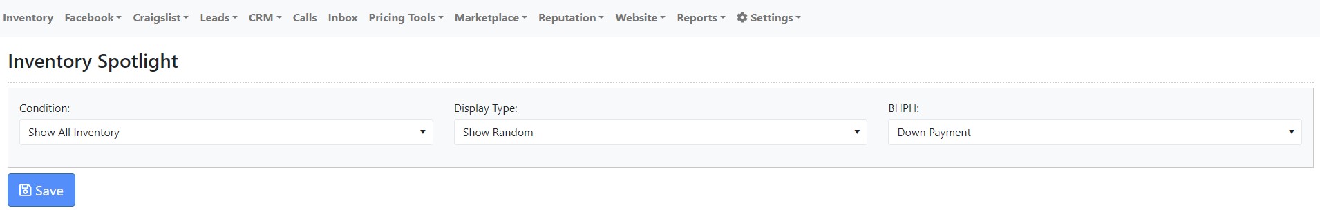 The Inventory Spotlight page allows you to select the vehicles you would like to display on the Featured Inventory section of your website homepage.