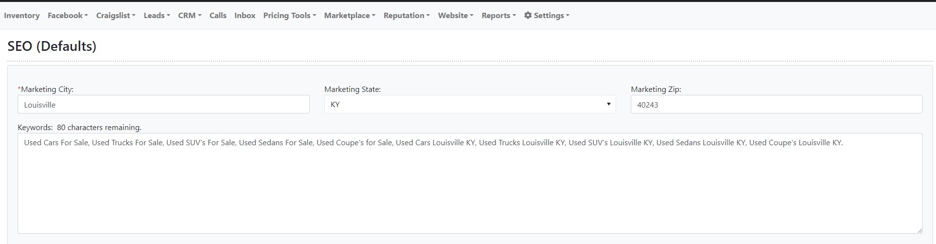These are optimized by default, but if you have something unique about your dealership that sets you apart, you may want to utilize this page to fit your dealership specifically.