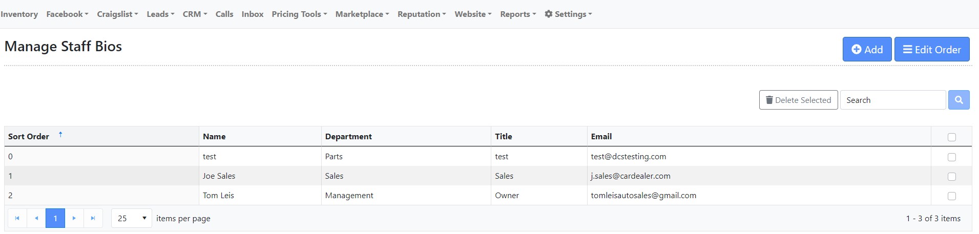 The Meet Our Staff page allows you to add your dealership staff members to your Meet Our Staff page on your website.
